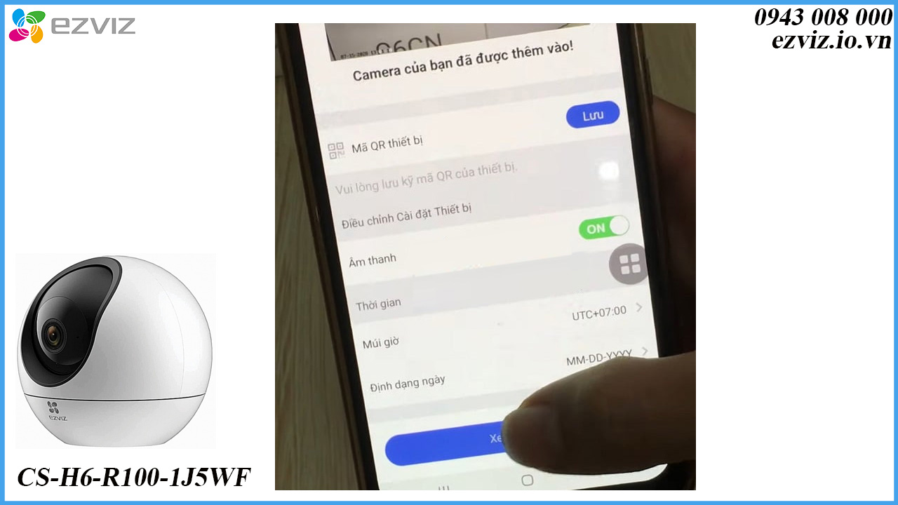 Bước 9: Sau khi kết nối thành công với Camera Ezviz, lúc này bạn có thể reset Camera Ezviz lại: Âm thanh; Múi giờ; Định dạng ngày